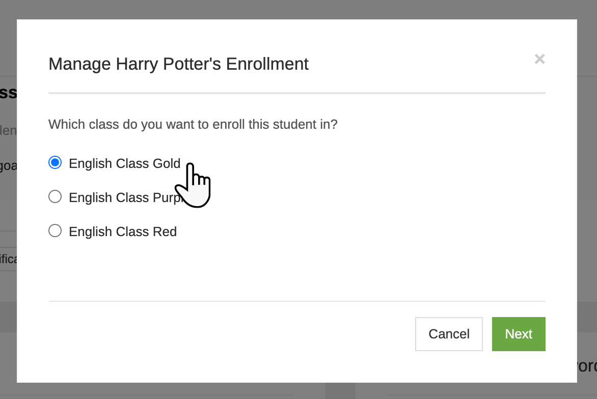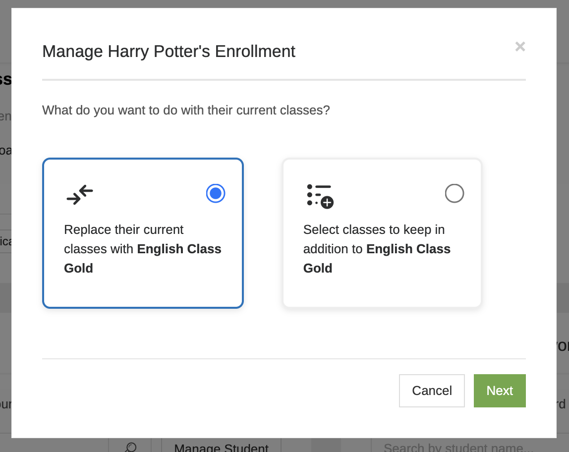 - If the student is not already enrolled in another class, you'll simply confirm the transfer.