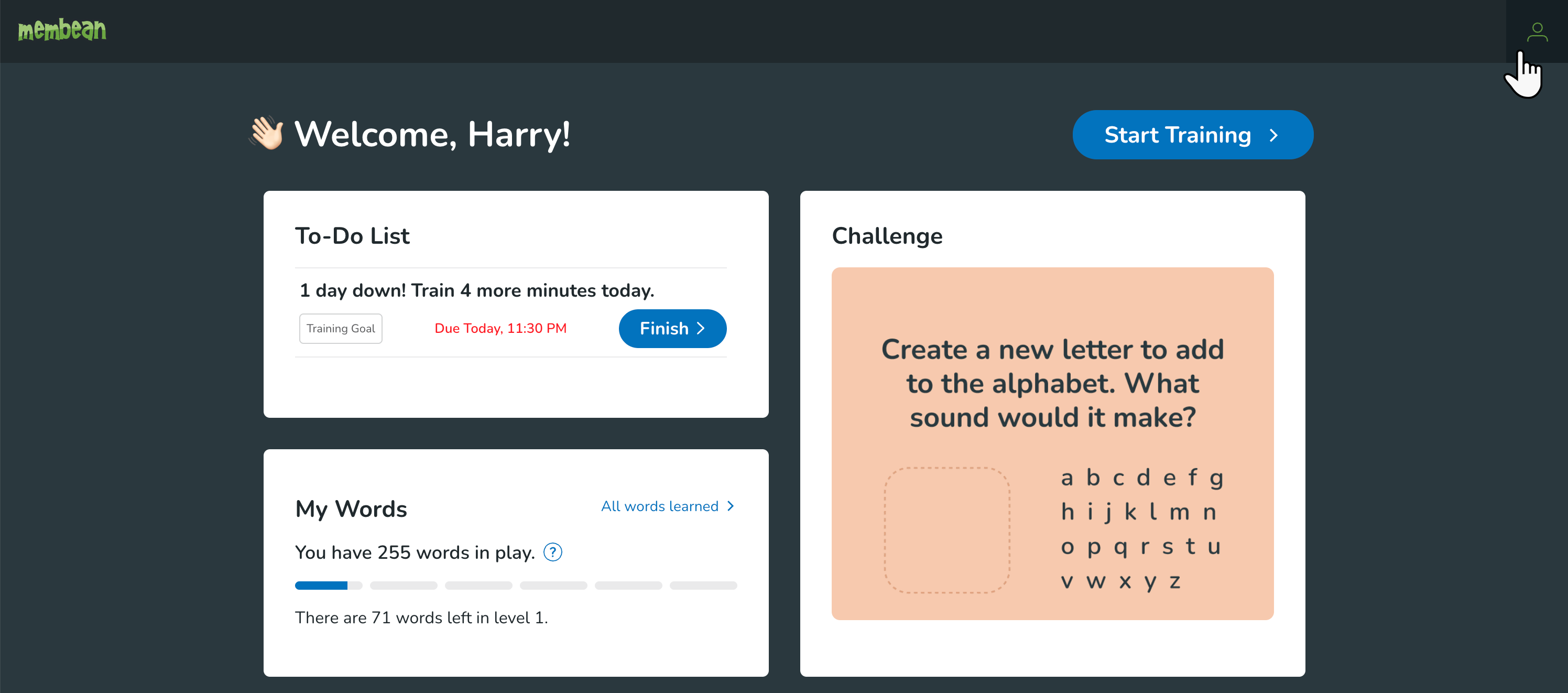 If you share a device or if you're using a public computer, you should logout of Membean after you're done with your session. This article will review how to log out of Membean.