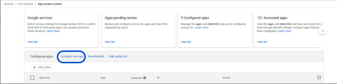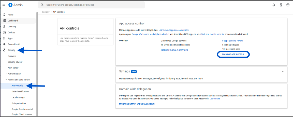 - Click the API Controls under Security > Access and data control > Manage App Access.